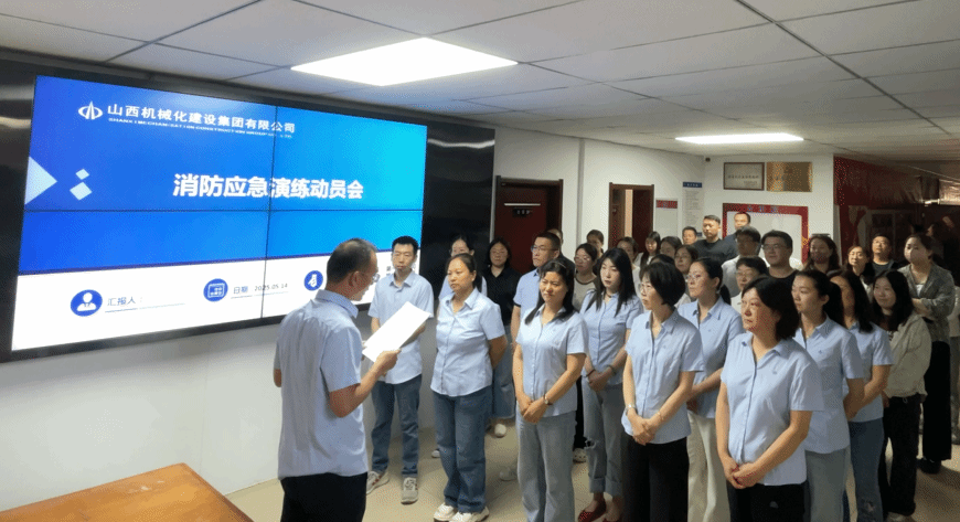 近日,山西建投机械化集团组织消防宁静应急演练运动。