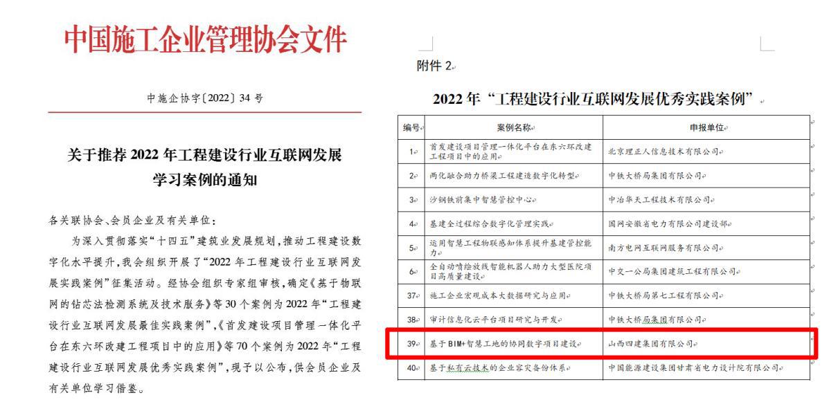 同时,该案例还获评中施企协2022年“工程新宝会行业互联网生长优秀实践案例”,被中施企协推荐为学习案例。