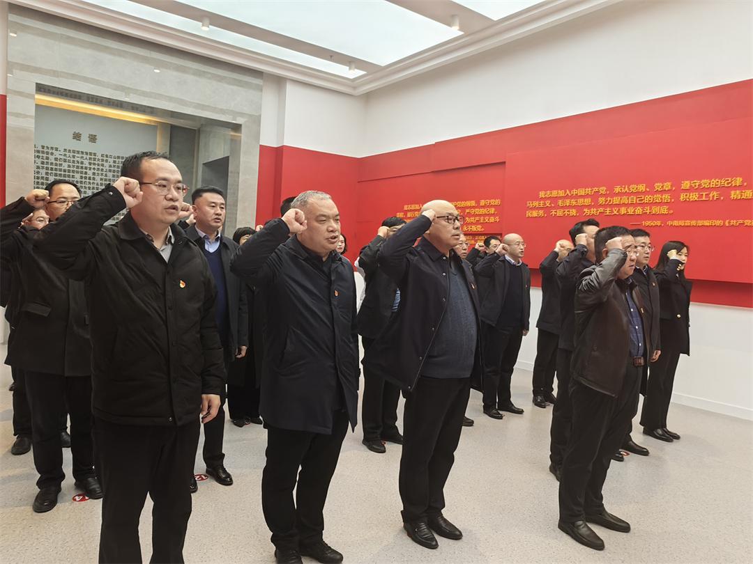 观展结束后,各人来到宣誓厅,面对鲜红的党旗庄严宣誓,一同重温入党誓词,重温党的初心与使命、重温对党的忠诚与允许、重温党员的责任与继续。