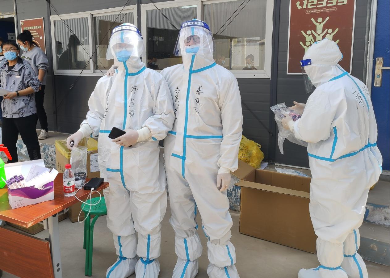 他们身穿防护服,化身“明白”,奔波在综改区唐槐园综合楼项目、唐槐园三期、唐槐园四期一标、唐槐园四期二标、太重新能源装备项目、安乐信项目、管委会停车场项目、旅游学院项目、公交停保场项目等核酸检测现场,协助医护人员进行人员身份确认、信息统计、核酸检测扫码挂号、维持核酸检测现场秩序等,获得了项目人员和综改区建管部的一致好评。