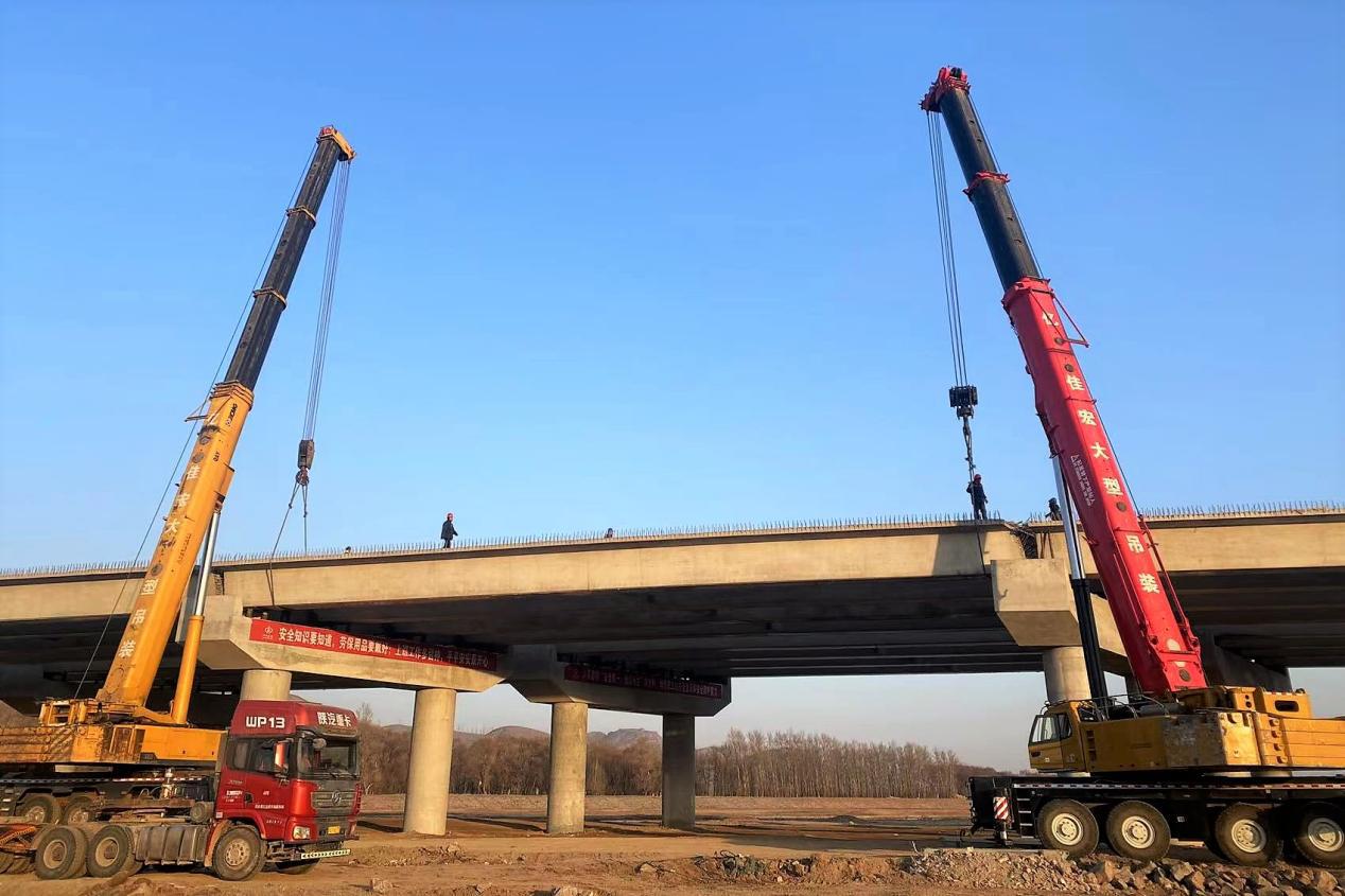 近日 ,公司承建的忻原大道旅游门路忻府区段工程项目滹沱河大桥80片预制箱梁顺利完成吊装 ,整体施工进度取得阶段性胜利。