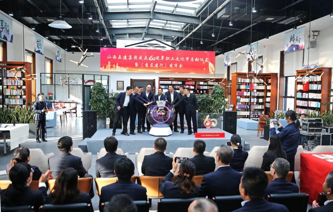 领导班子成员配合按动启动球,建立60周年职工文化节正式启动,《意匠建行》正式宣布。