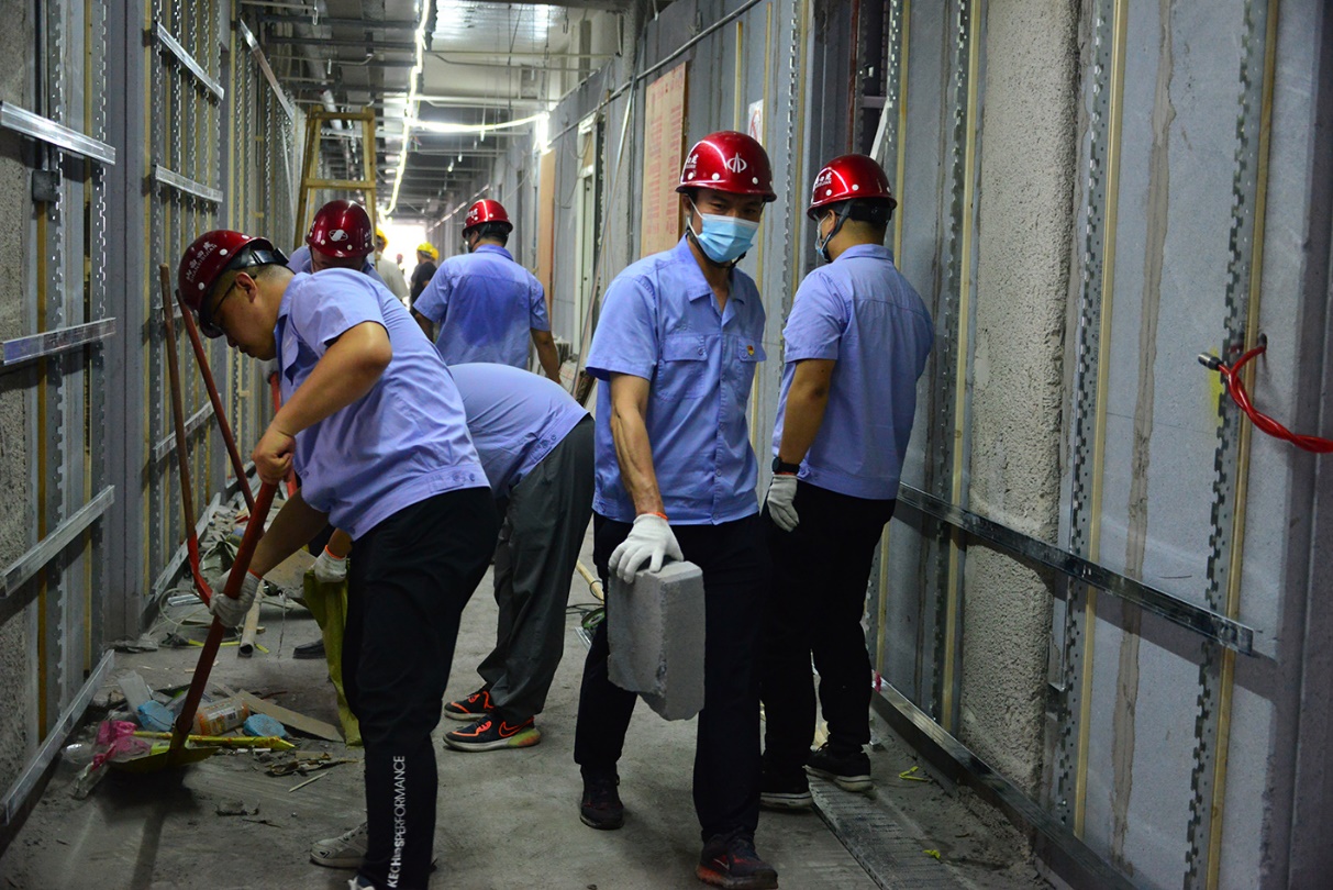 本次义务劳动主要是清理楼层内的建筑垃圾、扫除现场卫生等。在劳动现场,各人头戴宁静帽,手拿铁锹、扫把等工具,甩开臂膀,投入到紧张的劳动当中。盛夏时节,气温较高,汗水很快浸透了衣服,汗水与灰尘凝结在一起,各人切身体会到了项目一线员工的艰辛。