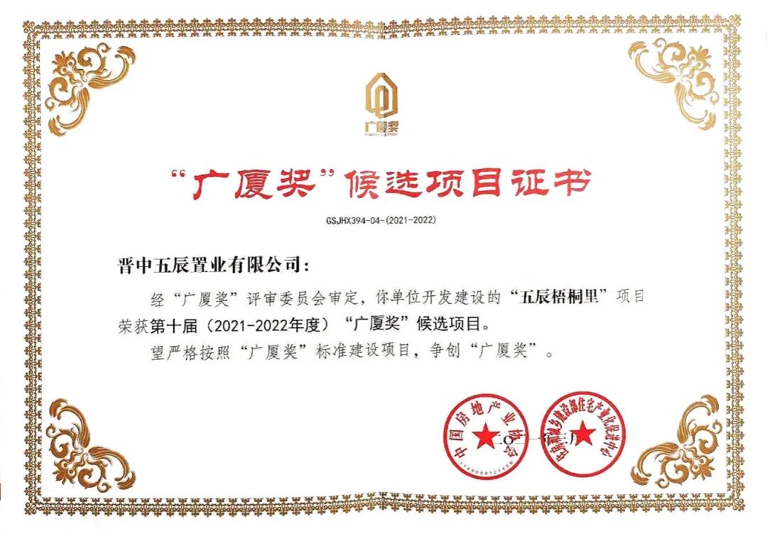 4月14日,中国房地工业协会、住房和城乡新宝会部住宅工业化增进中心宣布了第十届(2021-2022年度)“广厦奖”首批候选项目名单,本次评选全国26个项目入围,山西省仅有2个项目入围,由山西建投五建集团五辰置业有限公司开发新宝会的五辰梧桐里项目,成为集团首个入选“广厦奖”候选项目名单的房地产项目。