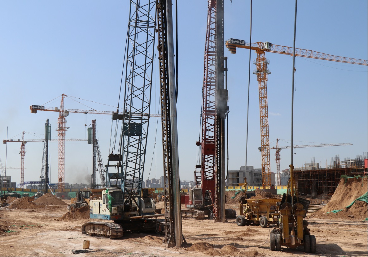 在建工程职教港项目正在进行高压拆除后的地基处理