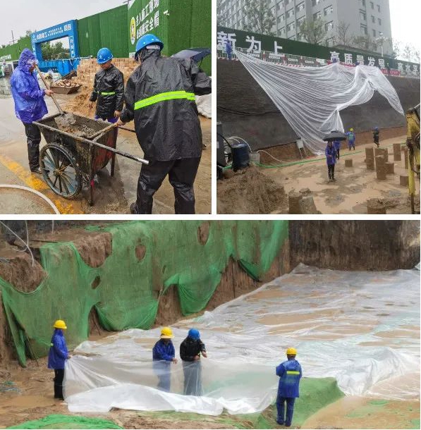面对暴雨,项目部迅速启动防汛应急预案,作为共产党员的经理邢庆丰第一时间奔赴现场指挥事情,领导项目部青年突击队和全体治理人员,迎风冒雨在基坑内开展排水抢险。生动诠释出党支部“三面红旗高高飘扬”的支部特色,是公司党员联系点“1+N”运动的又一具体实践。