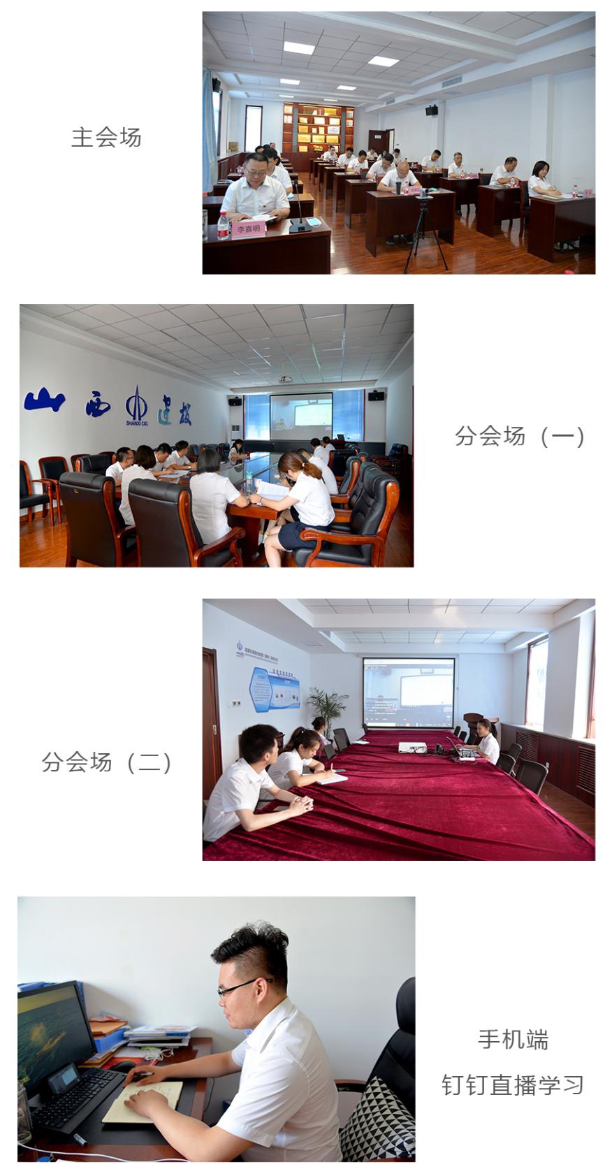此次学习以“主会场+分会场”,“线上+线下”的形式举办,除现场参学人员,各单位180余名青年职工通过钉钉直播加入学习。