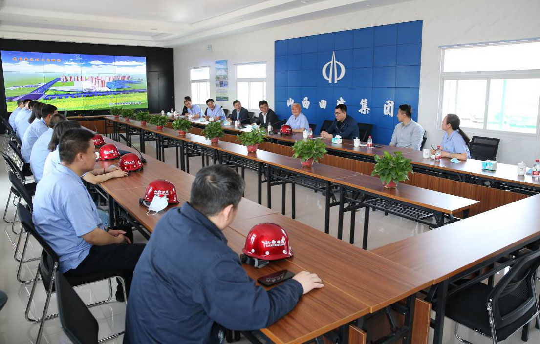 慰问后,举行了座谈交流会,项目总经理吴利军汇报了项目事情情况。温刚对项目部的疫情防控及全面复工复产事情给予了认可。