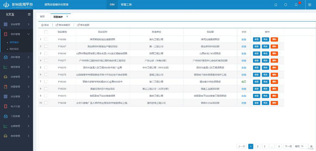 BIMƽ̨ÏîÄ¿ÖÎÀíÄ£¿é½çÃæ