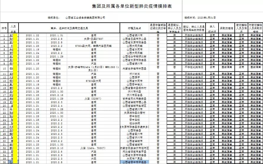 ¸÷µ¥Î»¡¢¸÷²¿·ÖÖð¼¶ÃþÇåÖ°¹¤ºÍÏîÄ¿ÀÍÎñÈËÔ±µÄ¼ÙÆÚÐг̡¢Ô˶¯ËùÔÚ£¬ÌرðÊÇ×ÔÎ人À´½ú·µ½ú;½úÈËÔ±Çé¿ö£¬Ã¿ÈÕÏò¹«Ë¾×ۺϰ칫ÊÒÉϱ¨¡£