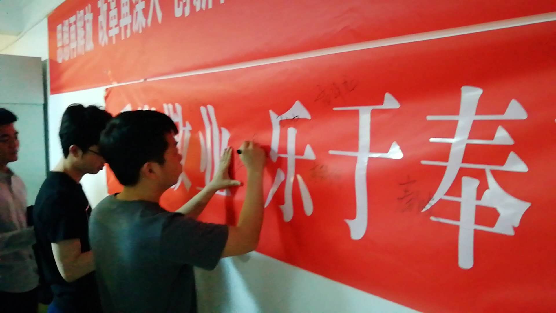 全体人员再次学习了赵斌同志先进事迹,并寓目中央电视台纪念革新开放四十周年《四十不惑之爱岗敬业》;配合重温《论语》中关于爱岗敬业名言;郑重的在“爱岗敬业乐于贡献”横幅上签名,这是向企业签的一份责任状,更是对自己职业生涯的郑重允许;团支部书记杜甜甜结合自己在兴城项目的经历分享了加入事情以来的感伤。