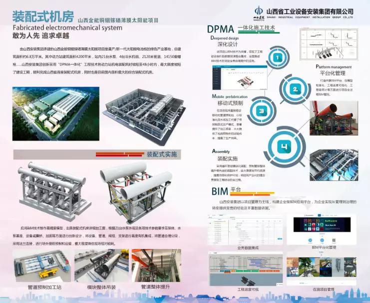 山西建投装置集团自主研发的“基于‘DPMA一体化’工程技术的金能项目装配式机房”技术结果,以BIM应用为基础,结合现代物料追踪、配送技术,实现了高效精准的机电装置装配式施工,获得了岑岭论坛的一致赞赏。目前,该技术已在山西首家、海内最大的装配式机房——山西金能动力站装配式机房实施完成。
