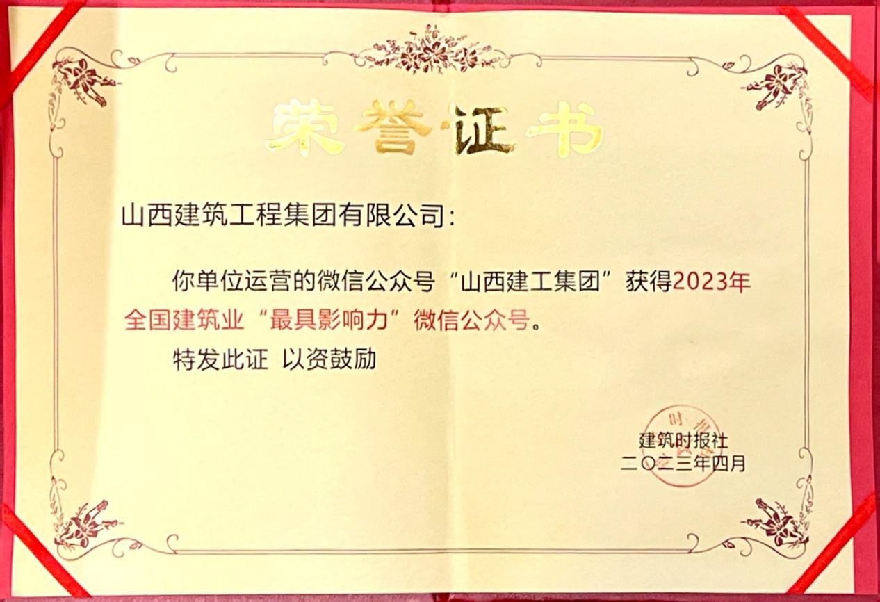 由建筑时报社主办的2023年建筑业微信民众号运维经验交流研讨会暨全国建筑业优秀民众号颁奖仪式在广西壮族自治区南宁市举办,“山西建工集团”微信民众号从全国参评的800余家建筑企业优秀微信民众号中脱颖而出,跻身100强,获评2023年全国建筑业“最具影响力”微信民众号。这是自建筑时报社2020年设立全国建筑业“最具影响力”微信民众号奖项以来,建工集团连续第四年获得该荣誉。建工集团将继续坚持正确舆论导向,规范运营治理,注重原创精品,构建有责任、有继续、有品质的内容生态,激励全员以高度的文化自觉和文化继续,推进“和·合”文化长期深入、落地生根。