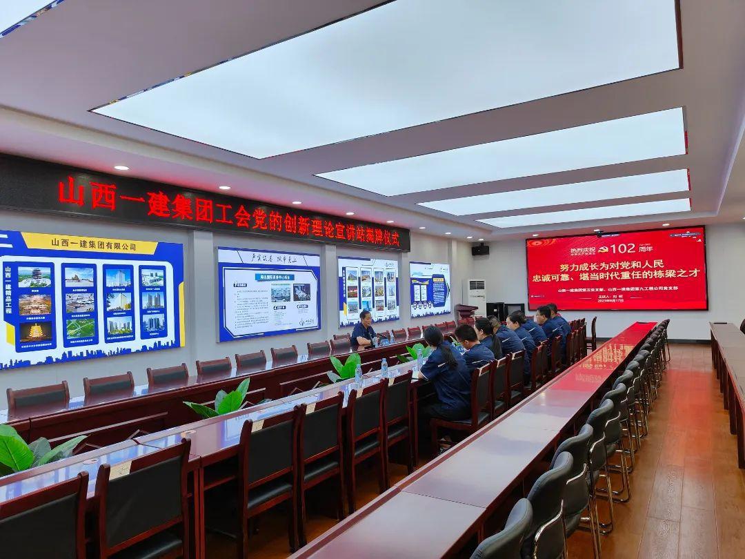 一建集团工会党的立异理论宣讲站揭牌仪式暨首场宣讲会在第九工程公司清徐阳光国际商务中心项目举行。总工程师、工会主席刘晖为工会党的立异理论宣讲站揭牌,并进行了首场宣讲。