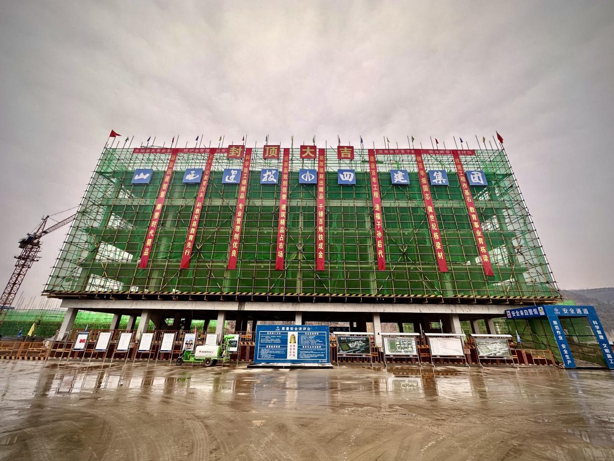 自2022年8月18日正式开工以来,面对工期紧迫、任务沉重、施工条件差等难题,项目部全体人员精心安排、科学组织、合理安排,以高效的执行力,提前完成各要害施工节点。尤其在冬期施工期间,项目部提前策划,时刻关注天气状况,抢在冬天第一场雪来临之前,完成最后一栋结构主体浇筑。最终,于2023年1月12日完成6栋主要单体建筑主体结构施工。
