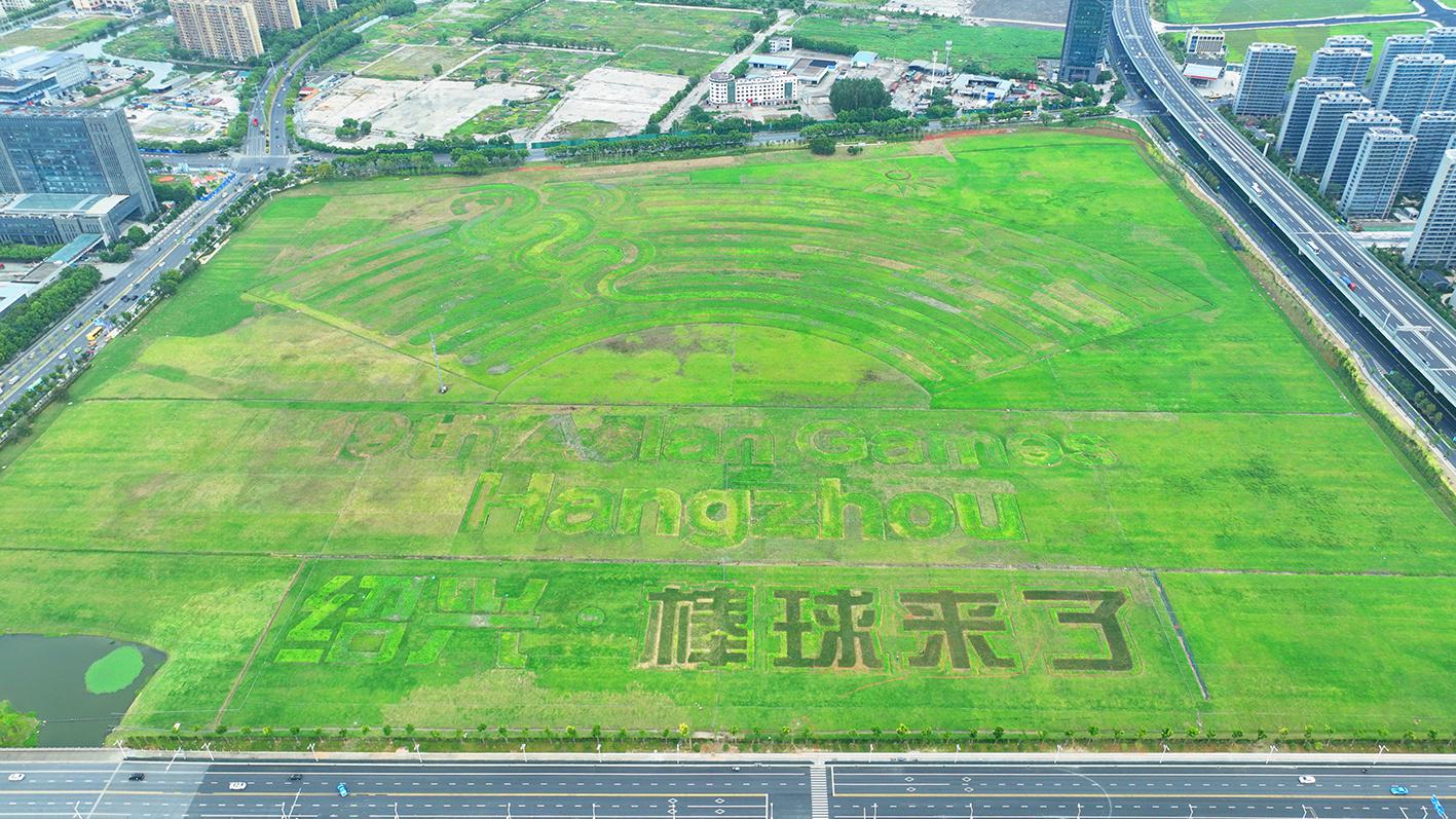 该项目施工总面积约44.8万平方米,其中籽播草花面积约8.5万平方米,草皮铺设面积约36.3万平方米,分为南北两个区域。北花海主要是用差别颜色的籽播花卉勾勒出亚运会会徽“潮涌”的图形以及主办都会名称等,南花海接纳籽播花卉刻画出“绍兴·棒球来了”主题文字及图案,彰显绍兴棒球文化特色,颜色以橙色、红色、黄色三种明亮跳跃且充满活力的色彩,象征体育竞技积极向上,拼搏不息的精神。