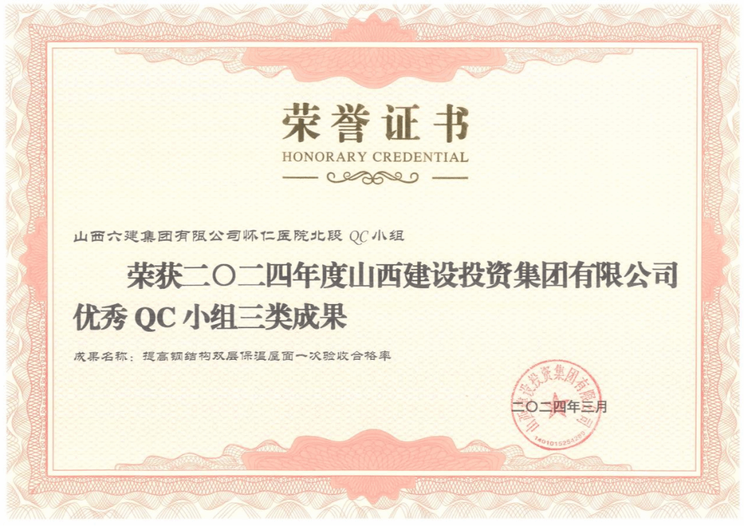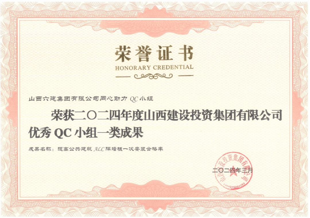 六建集团始终把QC活行动为引发项目一线立异活力的有效途径和全员加入质量革新的重要手段,QC小组成员紧密结合现场实际,紧扣技术立异、施工生产、质量治理等重难点课题研究,总结推广优秀做法和先进经验,形成了一大批高质量的QC运动结果,为下一步创立优质工程涤讪了基础。
