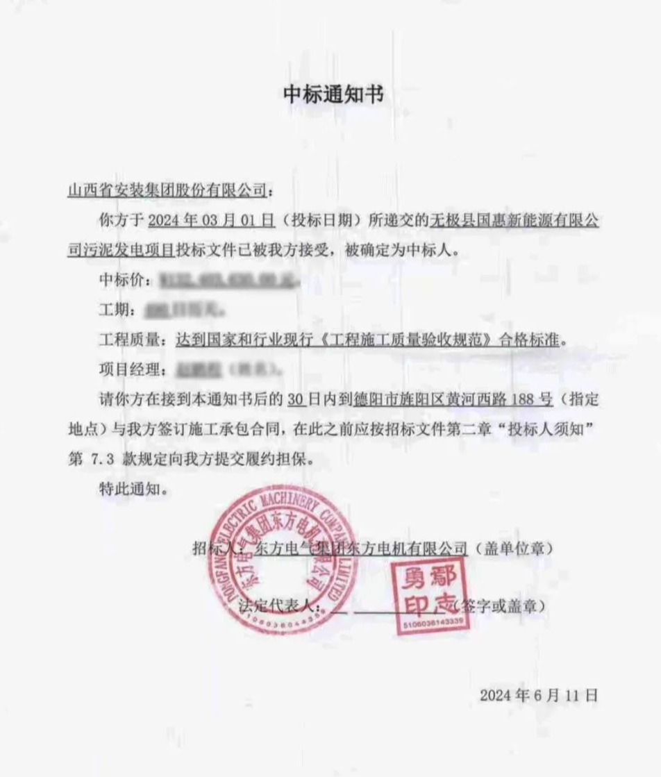6月11日,山西建投装置集团乐成中标无极县国惠新能源有限公司污泥发电项目 。